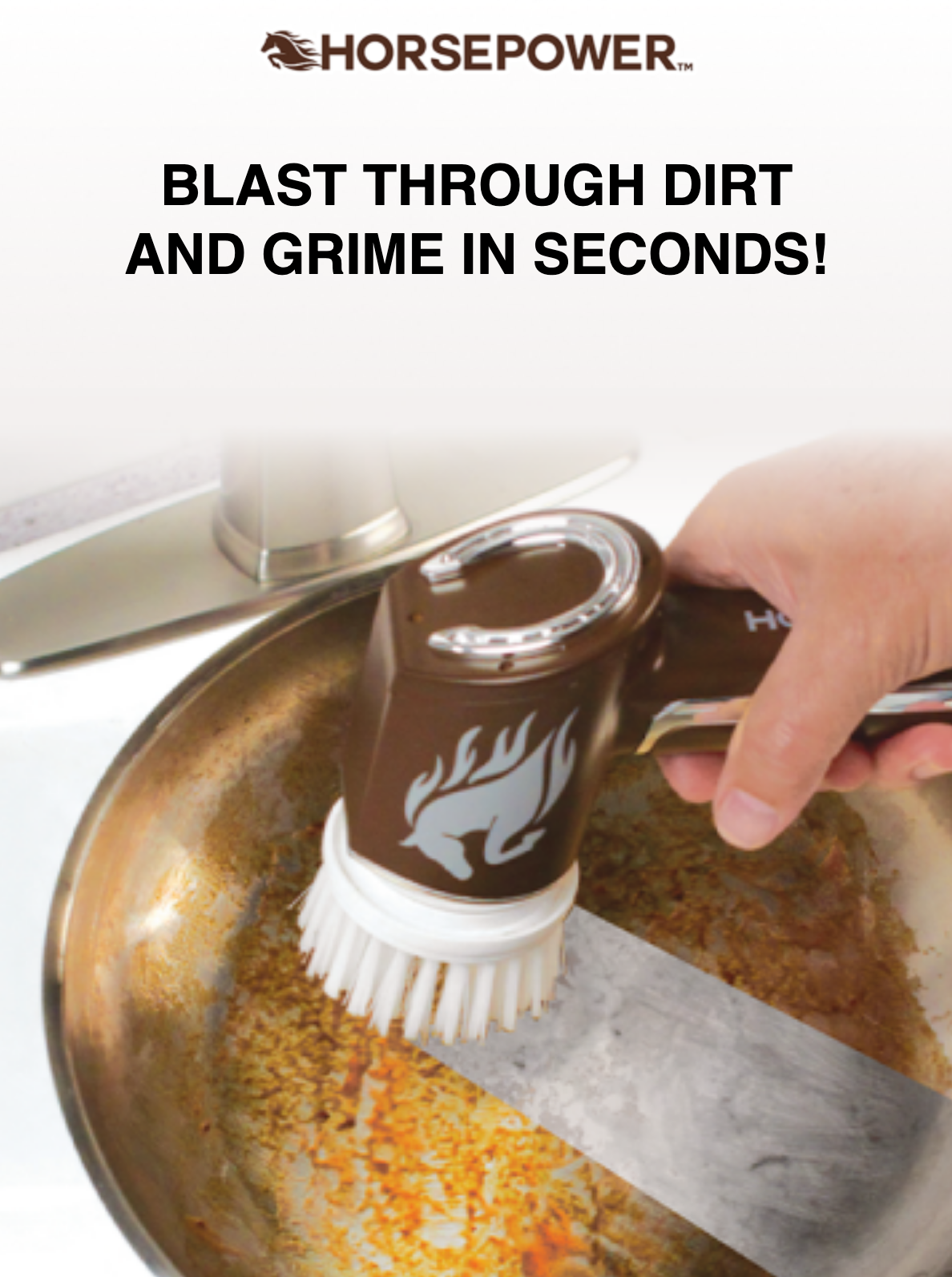 Few cleaning tools offer the satisfying power and speed of Horsepower’s handheld scrubber—a must-have for tough kitchen tasks and stubborn messes. With high-torque rotation and sturdy bristles, Horsepower cuts effortlessly through baked-on grease, burnt residue, and sticky grime, restoring cooktops, pans, and sinks to sparkling condition in seconds.